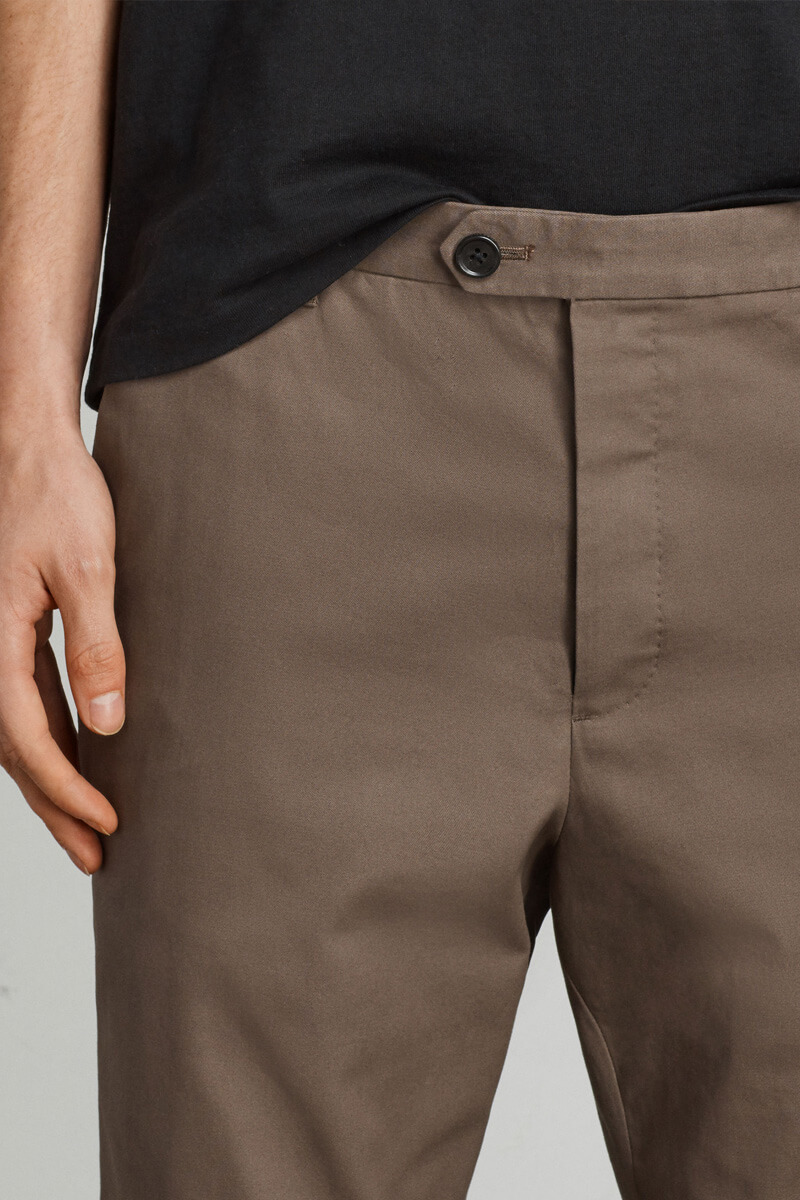 Wool & Cotton Jacket in a minimalistic one-side crop line with leather details on the pocket and the collar.