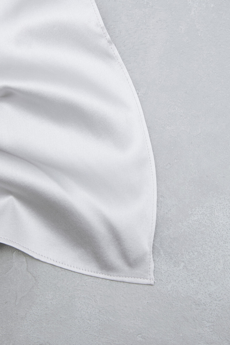Wool & Cotton Jacket in a minimalistic one-side crop line with leather details on the pocket and the collar.